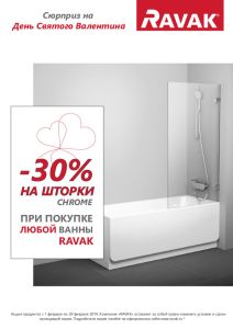при единовременной покупке ванны RAVAK и шторки CHROME RAVAK скидка на шторку -30%.