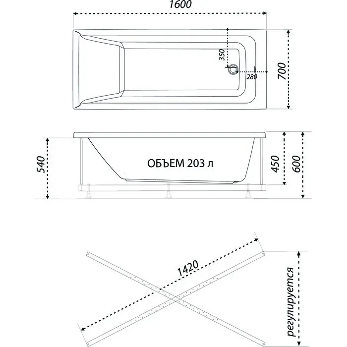 Акриловая ванна 1ACReal Тори Щ0000044550 160x70 см на Х-каркасе белый
