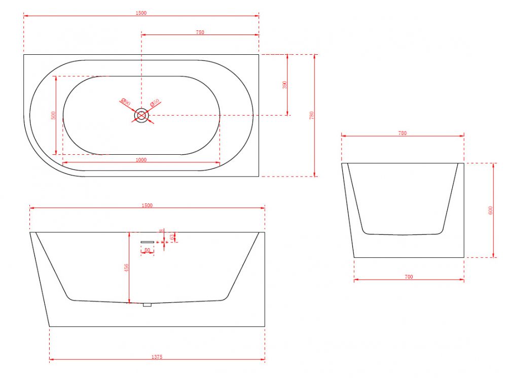 Акриловая ванна ABBER 150x80см AB9257-1.5 R