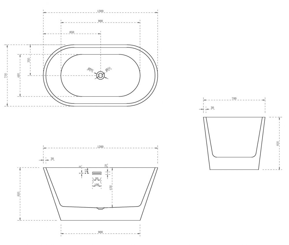 Овальная акриловая ванна с плавными линиями украсит любую ванную комнату.Ванна из литого акрила, армированная. Материал отличается прочностью и имеет гладкую поверхность без пор, что препятствует размножению бактерий и облегчает уход за ванной.