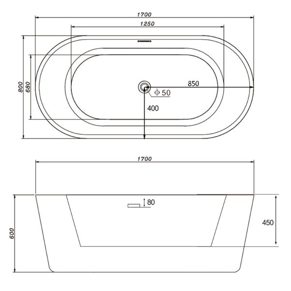 Акриловая ванна ABBER AB9209 170x80x60