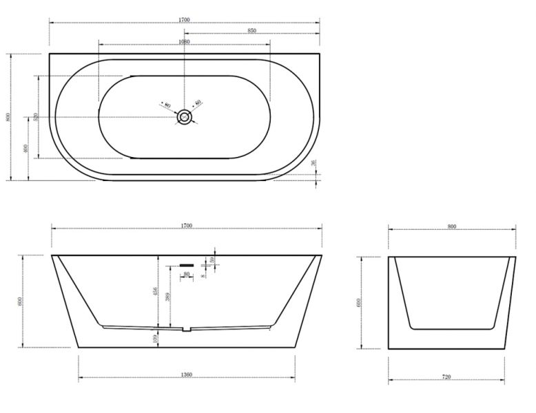 Акриловая ванна ABBER AB9216-1.7B.Каркас