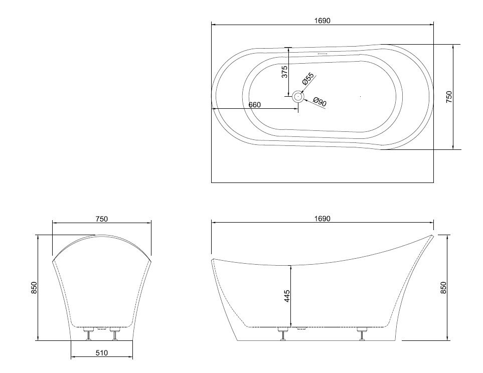 Акриловая ванна ABBER AB9245 169x75x85 купить