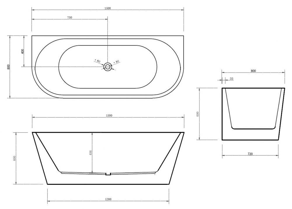 АКРИЛОВАЯ ВАННА ABBER AB9216-1.5 150х80 купить