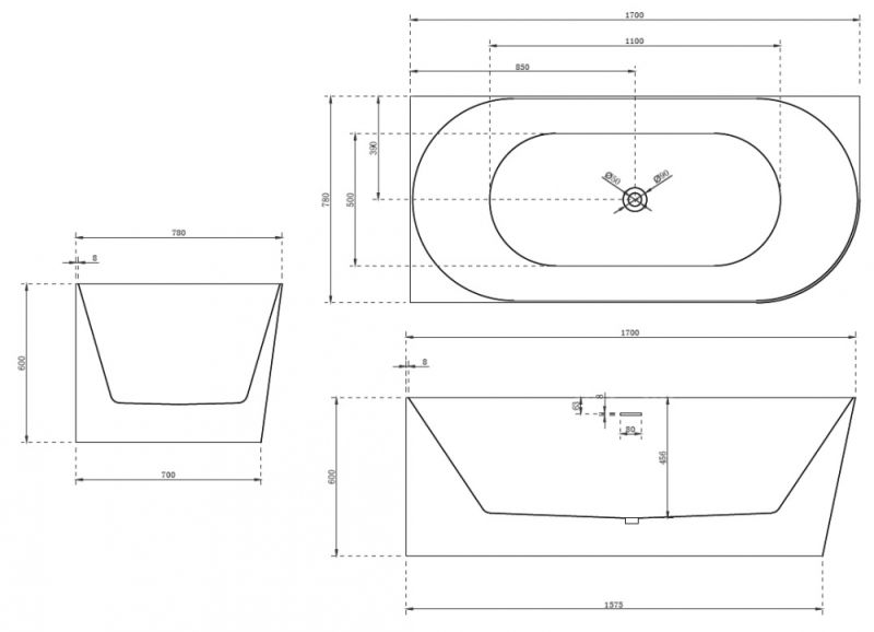 Акриловая ванна ABBER AB9258-1.7 L 170x78x60