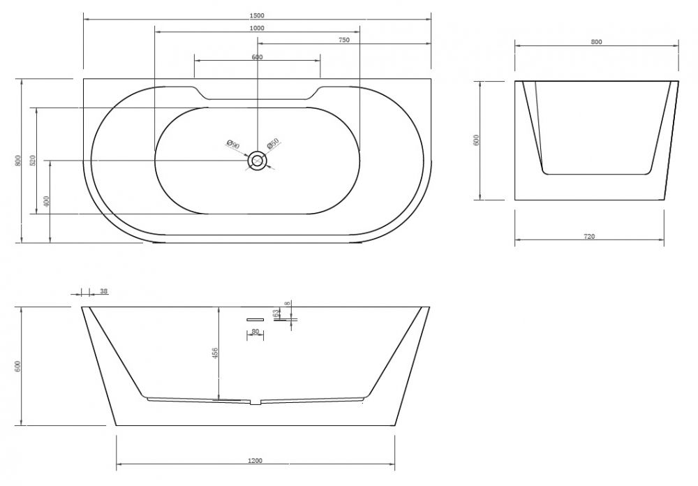 Акриловая ванна ABBER AB9296-1.5 150x80