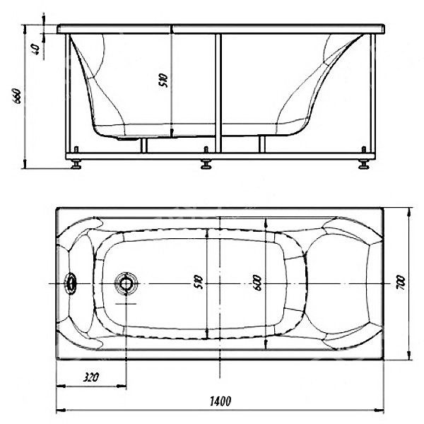 - Состав комплекта: Ванна, каркас, Слив-перелив