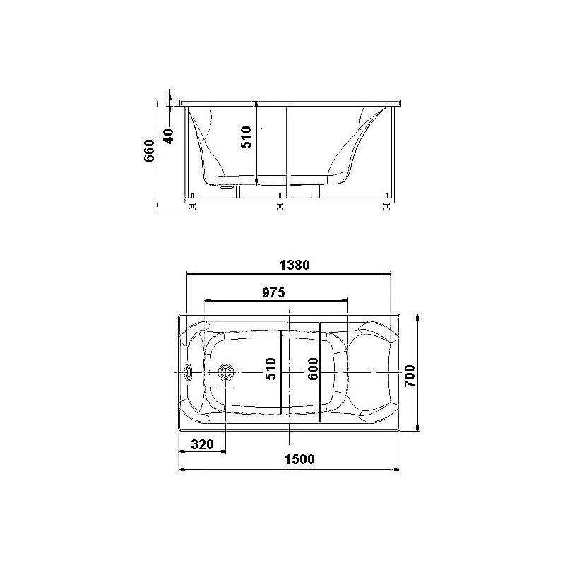 Длина, см:150Ширина, см:70Высота, см:66Глубина, см:51Форма:ПрямоугольнаяВнутр. размер дна, см:97,5Внутр. размер ванны, см:138Внутренняя ширина, см:60Макс. емкость, л:250Вес, кг:40-