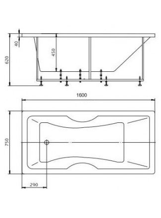 - Состав комплекта: Ванна, каркас, Слив-перелив
