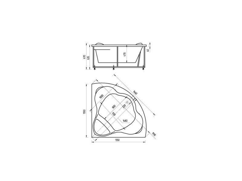 Длина, см:135Ширина, см:135Высота, см:67Глубина, см:47Форма:УгловаяВнутр. размер дна, см:92Внутр. размер ванны, см:146Внутренняя ширина, см:80Макс. емкость, л:270