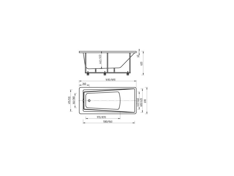 Длина, см:170Ширина, см:69Высота, см:62Глубина, см:45Форма:ПрямоугольнаяВнутр. размер дна, см:107Внутр. размер ванны, см:156Внутренняя ширина, см:49,5Макс. емкость, л:220Вес, кг:40