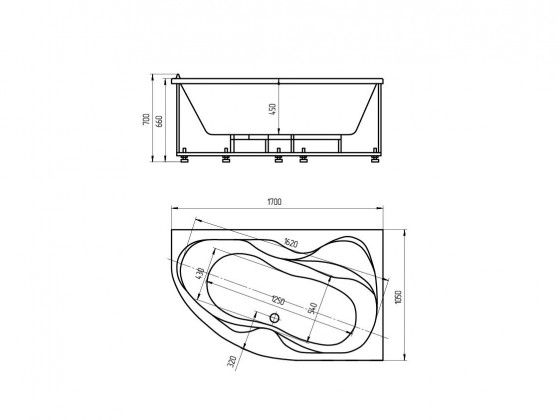 - Состав комплекта: Ванна, каркас, Слив-перелив