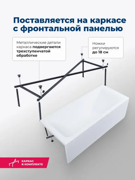 Акриловая ванна Aquanet Bright 347136 155x70 см с каркасом и фронтальной панелью купить