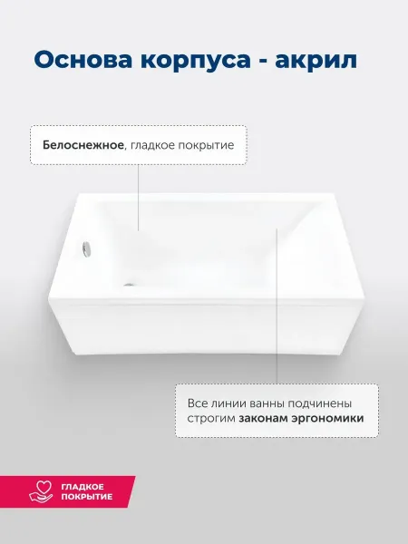 Акриловая ванна Aquanet создана с учетом растущего спроса на ванны простой прямоугольной формы в популярных размерах. Это модель с прямыми бортами и пологой спинкой, где соблюден идеальный угол для комфортного нахождения в ванне. Спинка плавно перетекает в бортик, поэтому релакс гарантирован даже без использования подголовника. Все линии ванны подчинены строгим законам эргономики. Чаша в этой ванне устроена таким образом, что для обозначенных размеров в ней достигнут максимально возможный внутренний объем, и это при комфортной глубине от слива ванны до борта. Ванна рассчитана на нагрузку свыше 300 кг, так что даже крепкий мужчина сможет без опаски находиться в ней. Двойной слой армирования обеспечивает надежность чаши, а закладные из МДФ-плит в местах наибольшей нагрузки усиливают эффект.