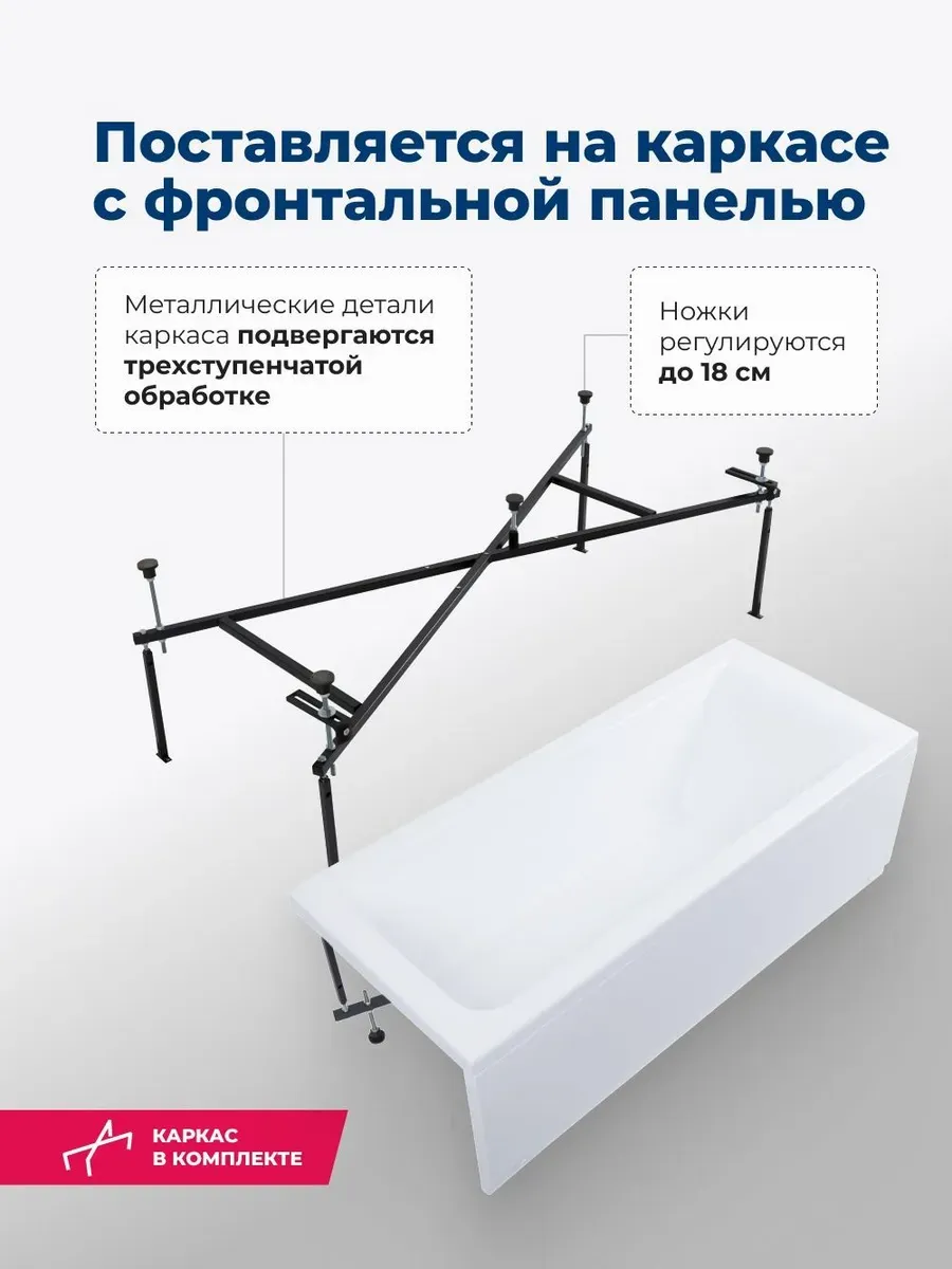 Акриловая ванна Aquanet Bright 347143 180x80 см с каркасом и фронтальной панелью купить