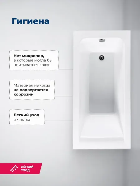 Акриловая ванна Aquanet Bright 155x70 создана с учетом растущего спроса на ванны простой прямоугольной формы в популярных размерах. Это модель с прямыми бортами и пологой спинкой, где соблюден идеальный угол для комфортного нахождения в ванне. Спинка плавно перетекает в бортик, поэтому релакс гарантирован даже без использования подголовника. Все линии ванны подчинены строгим законам эргономики. Ширина ванны 70 см при длине 155 см - это отличный вариант для маленьких ванных комнат. Чаша в этой ванне устроена таким образом, что для обозначенных размеров в ней достигнут максимально возможный внутренний объем, а именно 160 литров, и это при комфортной глубине в 416 мм от слива ванны до борта. Ванна рассчитана на нагрузку свыше 300 кг, так что даже крепкий мужчина сможет без опаски находиться в ней. Двойной слой армирования обеспечивает надежность чаши, а закладные из МДФ-плит в местах наибольшей нагрузки усиливают эффект.