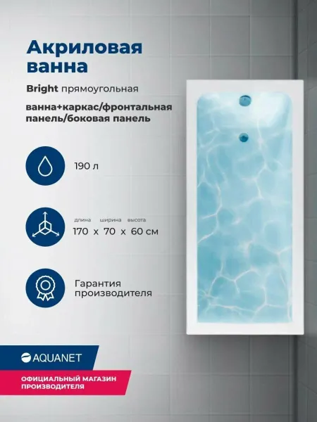 Акриловая ванна Aquanet Bright 347862 170x70 см с каркасом с фронтальной и боковой панелями купить