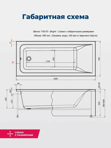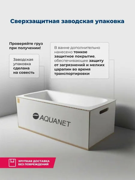 Акриловая ванна Aquanet Bright 170x70 создана с учетом растущего спроса на ванны простой прямоугольной формы в популярных размерах. Это модель с прямыми бортами и пологой спинкой, где соблюден идеальный угол для комфортного нахождения в ванне. Спинка плавно перетекает в бортик, поэтому релакс гарантирован даже без использования подголовника. Все линии ванны подчинены строгим законам эргономики. В современных условиях ширина ванны 70 см при длине 170 см - одно из популярных габаритов, так как прекрасно вписываются в стандартную планировку современных ванных комнат. Чаша в этой ванне устроена таким образом, что для обозначенных размеров в ней достигнут максимально возможный внутренний объем, а именно 190 литров, и это при комфортной глубине в 433 мм от слива ванны до борта. Ванна рассчитана на нагрузку свыше 300 кг, так что даже крепкий мужчина сможет без опаски находиться в ней. Двойной слой армирования обеспечивает надежность чаши, а закладные из МДФ-плит в местах наибольшей нагрузки усиливают эффект.