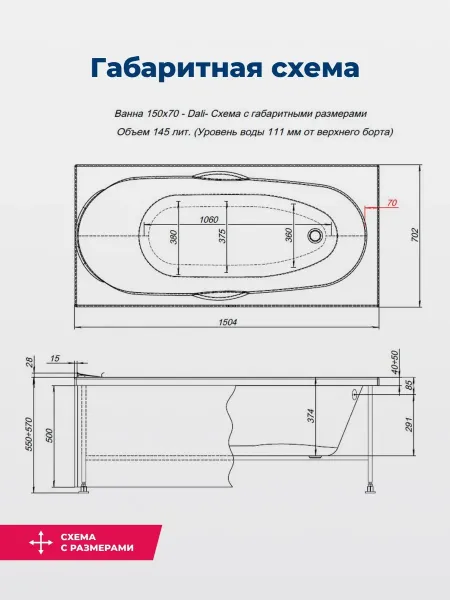Ванна Dali Aquanet — эргономичная модель, созданная с учетом анатомических особенностей человека. Компактная чаша изготовлена из литьевого акрила толщиной 0,5 см — гипоаллергенного материала, устойчивого к деформациям. Комфорт и безопасность при проведении гигиенических процедур обеспечивает пологая спинка и антискользящее покрытие. За счет великолепных теплоизоляционных характеристик материала вода не остывает в течение долгого времени. На непористой поверхности не образуется налет и не скапливаются загрязнения.
