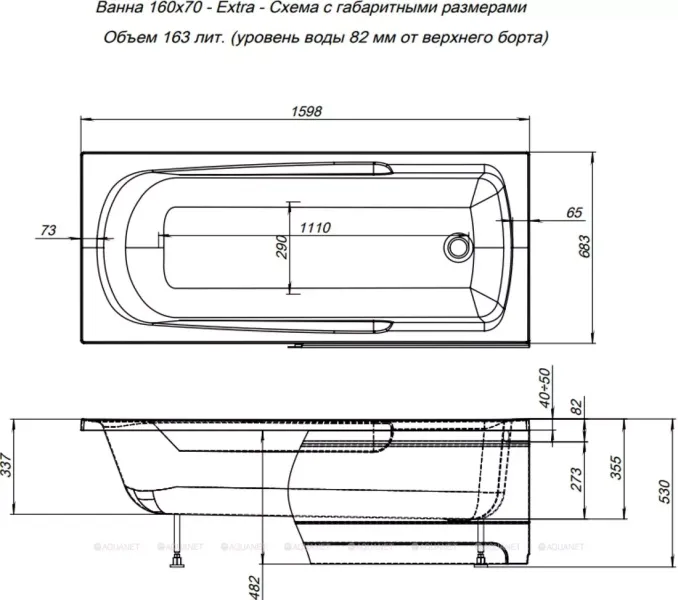 Акриловая ванна Aquanet Extra 160x70 может стать настоящей изюминкой ванной комнаты. И все благодаря элегантным линиям, более покатым у изголовья и резко очерченным – в изножье. Форма чаши содержит боковые детали, которыми удобно пользоваться как подлокотниками. Особенно актуально, если в семье есть дети и пожилые люди. Борт ванны со стороны изголовья сделан под углом, который соответствует принципам эргономики, а значит, находится в такой ванне – настоящий отдых для всего тела. Эксклюзивным для ванны Extra является и антискользящее покрытие. Оно похоже на застывшие на днище в виде ромбического узора маленькие круглые капельки воды. Для изготовления ванны использован сантехнический акрил толщиной 4 мм, а для усиления корпуса в местах наибольшей нагрузки установлены закладные из МДФ-плит и сделано двухслойное армирование стеклоровингом.