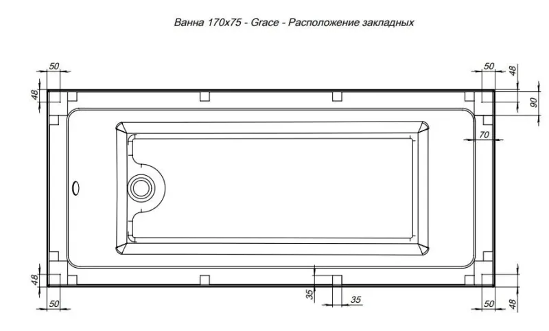 Акриловая ванна Aquanet Grace 00312397 170x75 см с каркасом