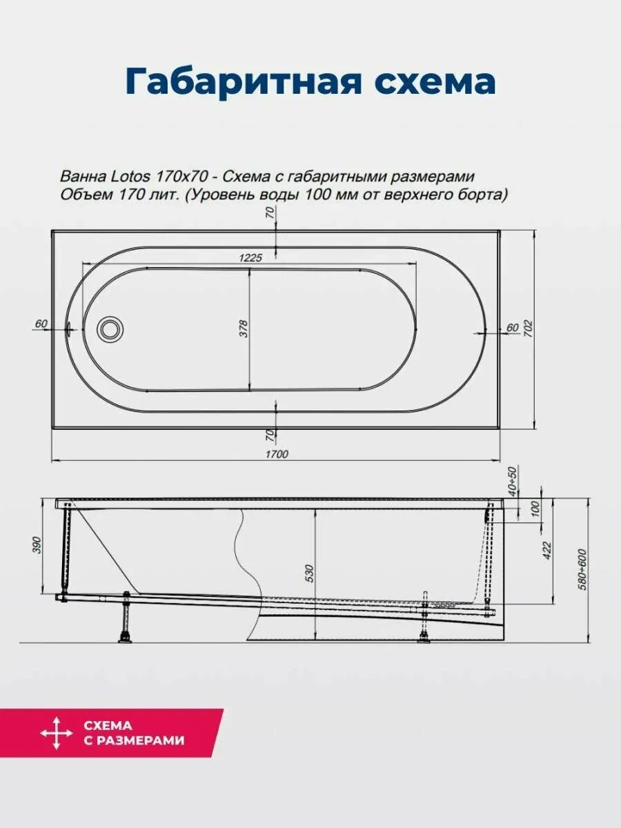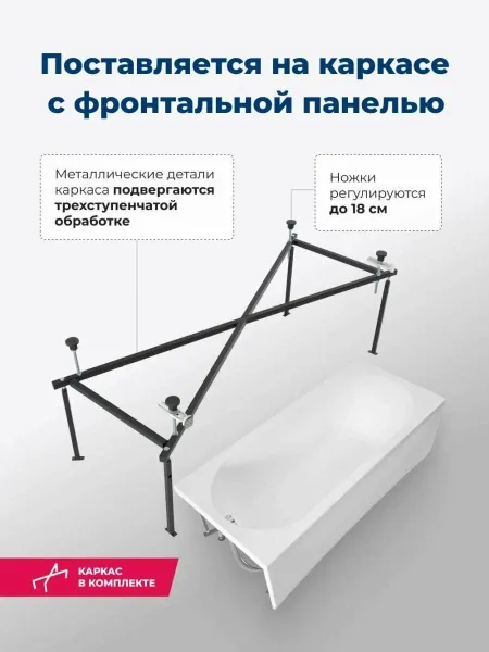 Акриловая ванна Aquanet Lotos 347158 170x70 см с каркасом и фронтальной панелью купить