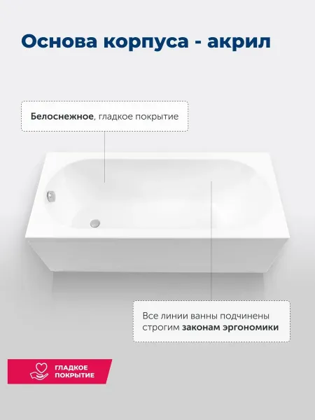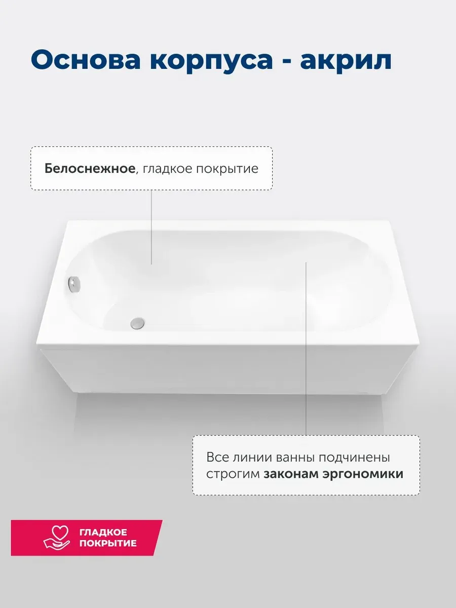 Эргономичный дизайн ванны включает в себя овальную чашу с плавной спинкой и практичными бортиками, где всегда можно разместить необходимые средства гигиены. Металлический каркас с регулируемыми ножками обеспечивает устойчивость и надежность конструкции. Белоснежный цвет и глянцевая поверхность придают ванне современный и стильный вид, который станет украшением любой ванной комнаты.