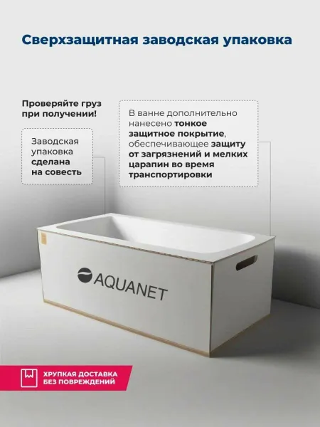 Акриловая ванна Aquanet белого цвета с глянцевой поверхностью и плавными линиями выполнена в стиле модерн. За основу изготовления корпуса взят акрил. Материал отличается способностью хорошо поглощать звуки и долго удерживать тепло. Для повышения прочности применено многослойное армирование. Модель прямоугольной формы и универсальной ориентации будет органично смотреться как в нише, так и при размещении вдоль стены.