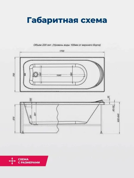 Акриловая ванна Aquanet Nord 347887 170x70 см с каркасом с боковой и фронтальной панелями