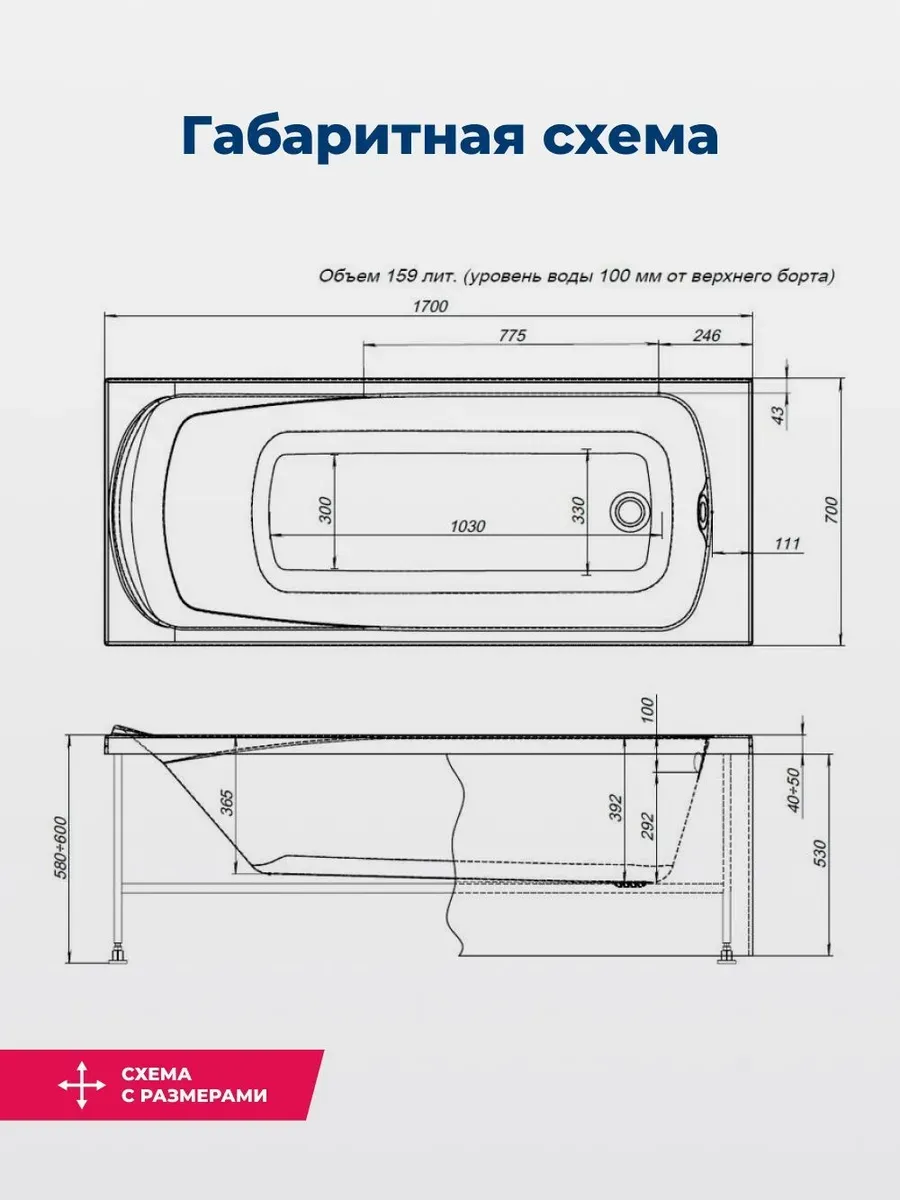 Акриловая ванна Aquanet Roma 347890 170x70 см с каркасом с боковой и фронтальной панелями