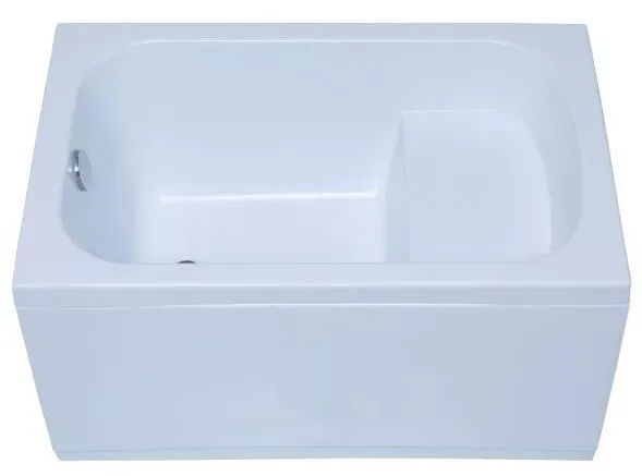 Акриловая ванна Aquanet Seed 110x70 - суперкомпактная модель, которая поместится даже в самом скромном по размерам помещении. В ширину она 70 см, а вот длину имеет необычно маленькую – всего 110 см. Принимать ванну взрослому человеку в ней можно только сидя, поэтому для удобства в ванне предусмотрено сидение. Впрочем, даже в таком положении при глубине 372 мм от слива ванны до борта в нее можно погрузиться всем телом. В ванну входит 80 литров воды. Маленькая ванна Seed по качеству не уступает своим более габаритным собратьям. Она сформована из сантехнического акрила европейского производства, покрыта для прочности двойным слоем стеклоровинга с установкой в местах наибольшей нагрузки закладных из МДФ-плиты. У нее широкие борта, которые подойдут для установки каскадного смесителя или которые можно использовать в качестве полочки для гигиенических средств. А поверхность чаши белоснежная и глянцевая, приятная на ощупь.