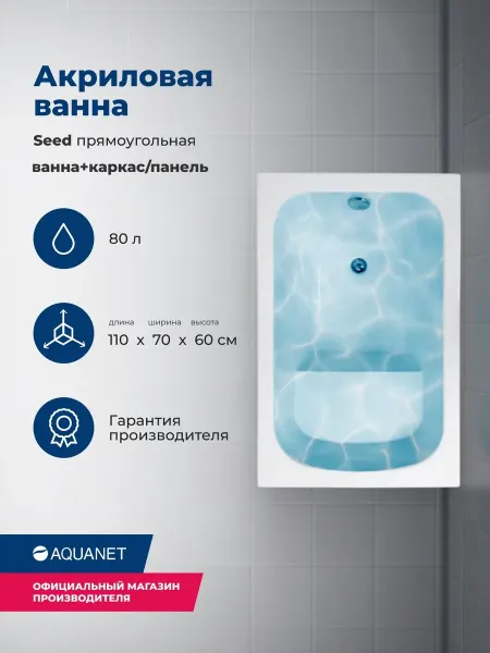 Акриловая ванна Aquanet Seed 347170 100x70 см с каркасом и фронтальной панелью купить