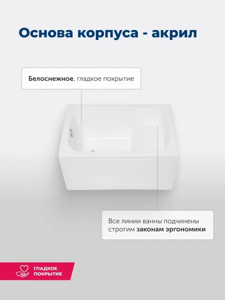 Акриловая ванна Aquanet Seed 100x70 - суперкомпактная модель, которая поместится даже в самом скромном по размерам помещении. В ширину она 70 см, а вот длину имеет необычно маленькую – всего 100 см. Принимать ванну взрослому человеку в ней можно только сидя. Впрочем, даже в таком положении при глубине 385 мм от слива ванны до борта в нее можно погрузиться всем телом. В ванну входит 90 литров воды. Маленькая ванна Seed по качеству не уступает своим более габаритным собратьям. Она сформована из сантехнического акрила европейского производства, покрыта для прочности двойным слоем стеклоровинга с установкой в местах наибольшей нагрузки закладных из МДФ-плиты. У нее широкие борта, которые подойдут для установки каскадного смесителя или которые можно использовать в качестве полочки для гигиенических средств. А поверхность чаши белоснежная и глянцевая, приятная на ощупь.