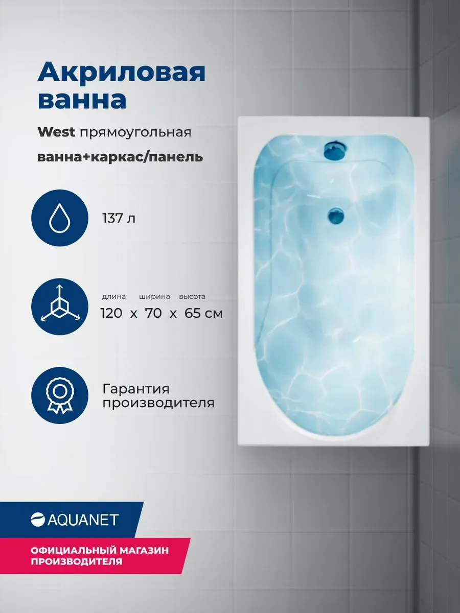 Акриловая ванна Aquanet West 347174 120x70 см с каркасом и фронтальной панелью купить
