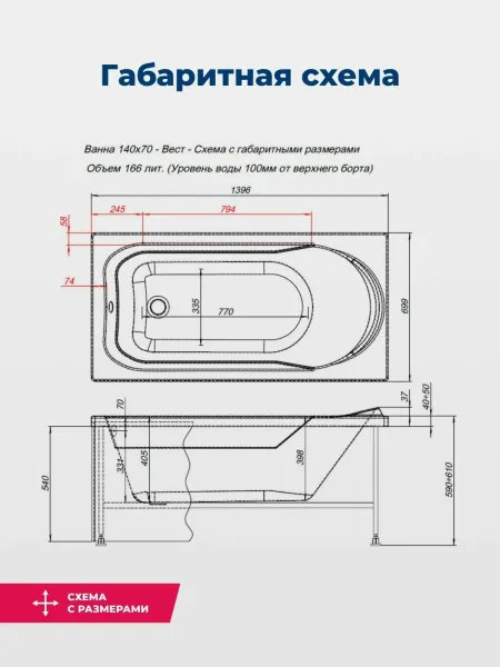 Акриловая ванна Aquanet West 347176 140x70 см с каркасом и фронтальной панелью