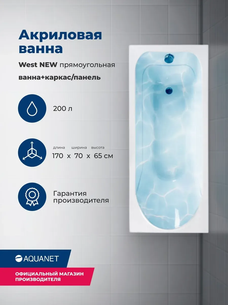 Акриловая ванна Aquanet West 347181 170x70 см с каркасом и фронтальной панелью