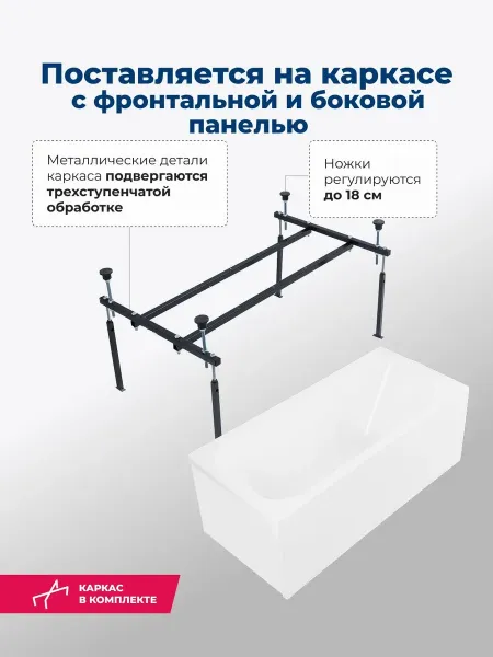Акриловая ванна Aquanet West 347897 120x70 см с каркасом с боковой и фронтальной панелями купить
