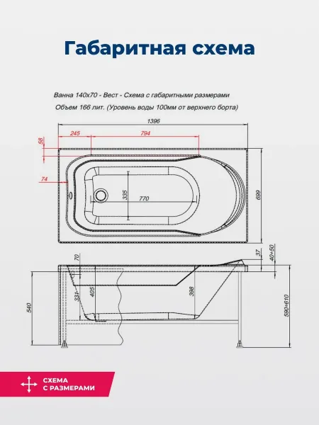 Акриловая ванна Aquanet West 347899 140x70 см с каркасом с боковой и фронтальной панелями