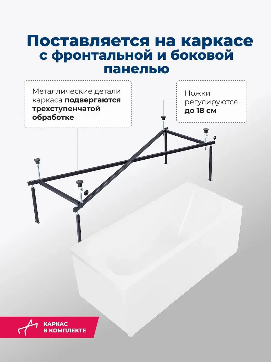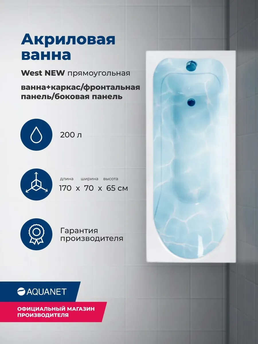 Акриловая ванна Aquanet West 347902 170x70 см с каркасом с боковой и фронтальной панелями купить