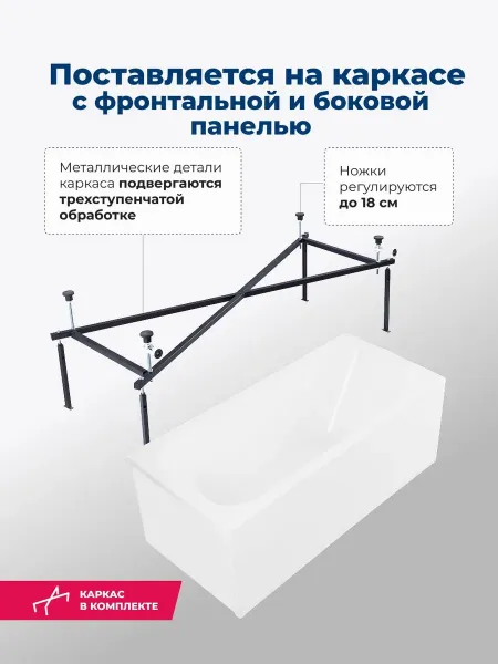 Акриловая ванна Aquanet West 347902 170x70 см с каркасом с боковой и фронтальной панелями