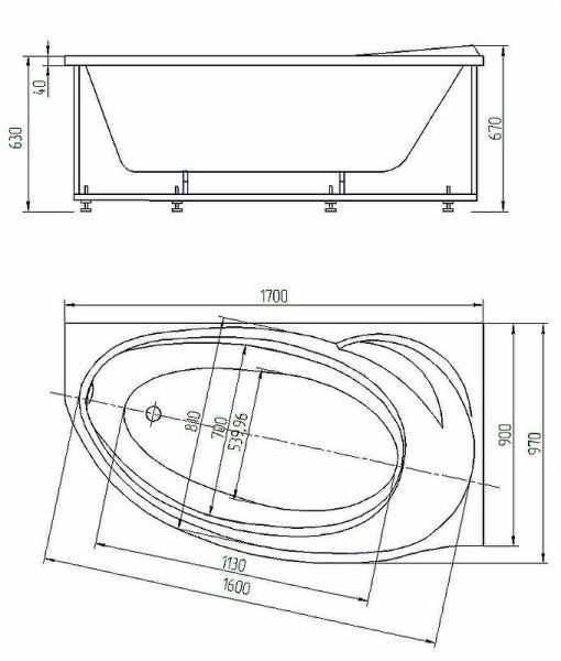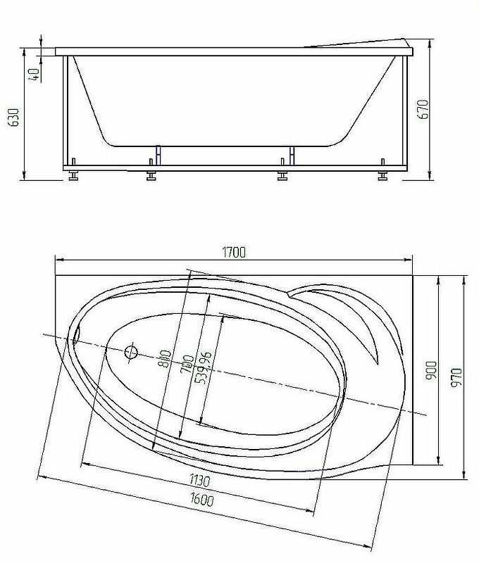 - Ванна устанавливается на каркас, который поставляется в комплекте