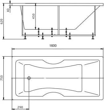 - Ванна устанавливается на каркас, который поставляется в комплекте