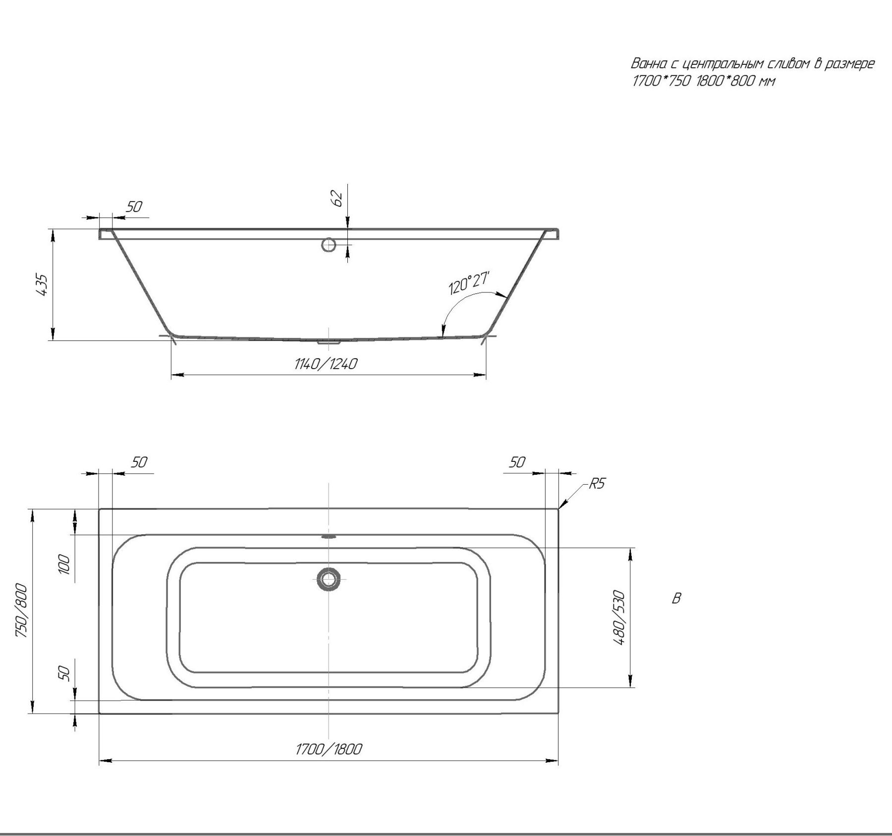 Габариты (Д Ш), см: 170х75Высота с опорой, см: 62Объем, л: 250 Форма: прямоугольнаяМонтаж: пристеннаяРасположение перелива: по центруДиаметр слива ванны, см: 5,1Материал: 100% литьевой акрилЦвет: белыйГарантия: 20 летСтрана: Россия Вид опоры: каркас сборно-разборный металлический (шпильки) или опорная конструкция (ножки), приобретается отдельноЭкран: фронтальный и боковой, приобретаются отдельноСлив-перелив: нет, приобретается отдельноАнтискользящее покрытие: нескользкая поверхность