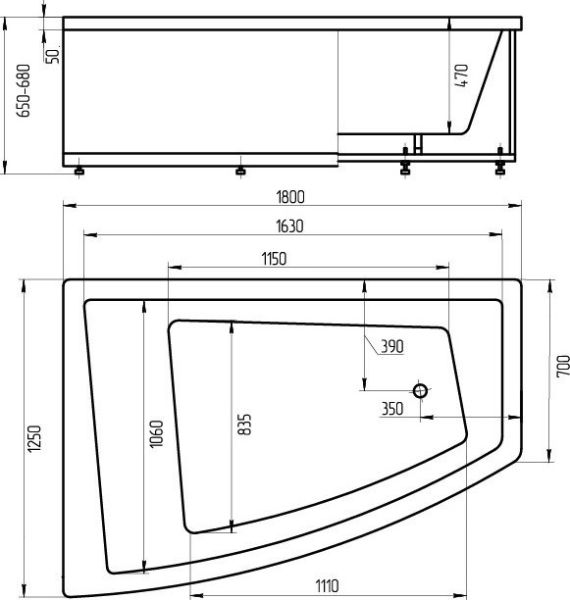 - Возможна установка системы гидромассажа, аэромассажа, ароматерапии, подводной подсветки, хромотерапии, системы дезинфекции