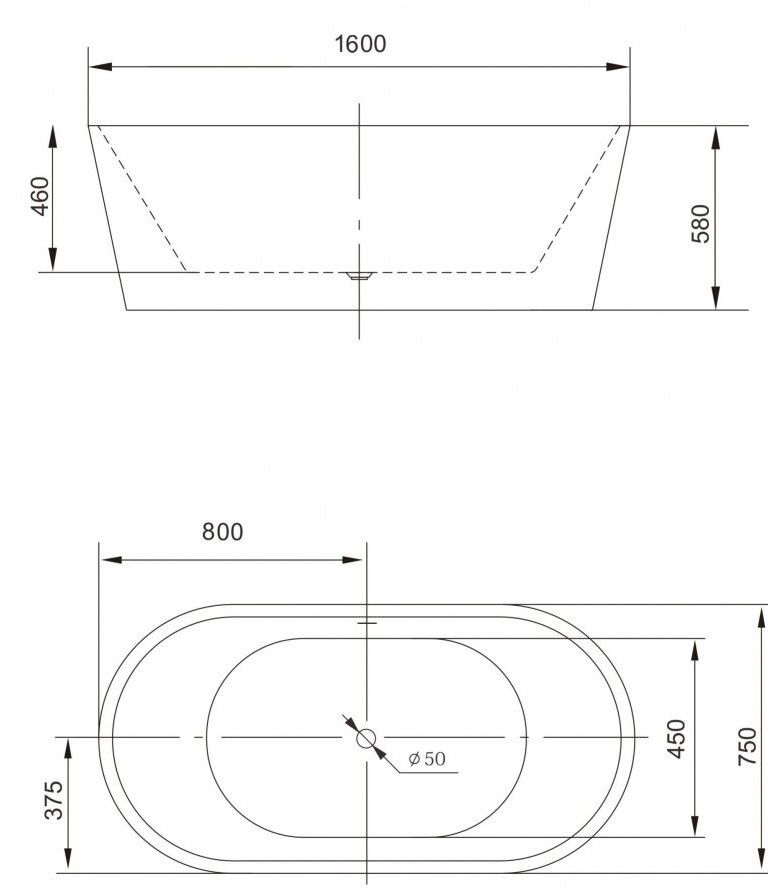 Акриловая ванна Art&Max 160x75см белый AM-203-1600-750