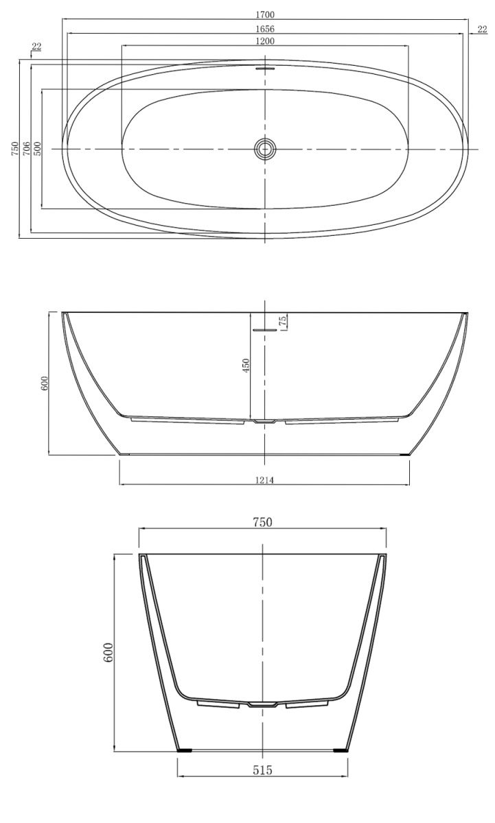 Акриловая ванна Azario DARWIN DAR17075 свободностоящая 1700х750х600