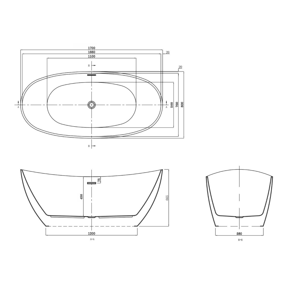 Акриловая ванна Azario GLASGOW GLA16778MB 1700х800х665