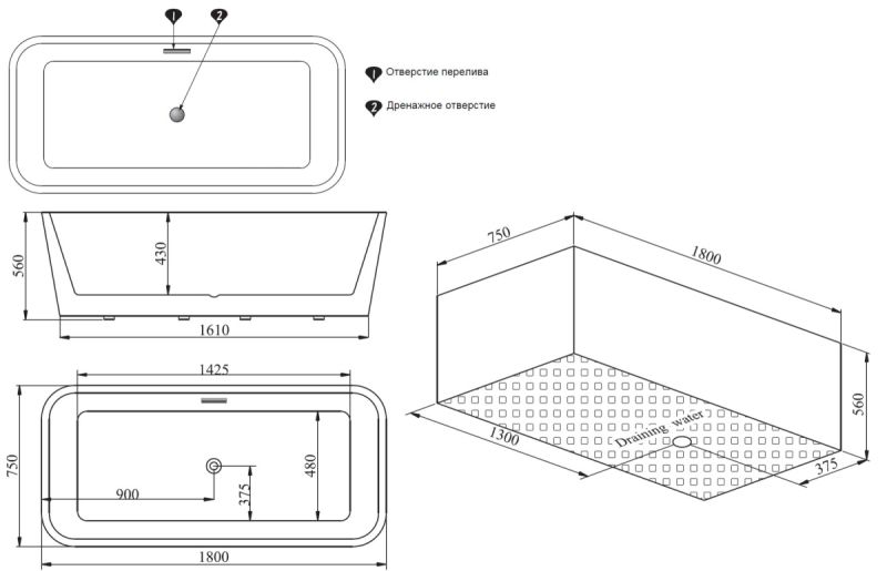 Акриловая ванна AZARIO WALESA AZ-M702 1800х750х560 отдельностоящая