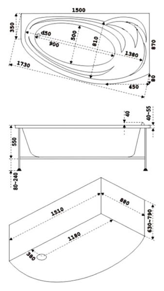 Состав поставки: Ванна, Каркас