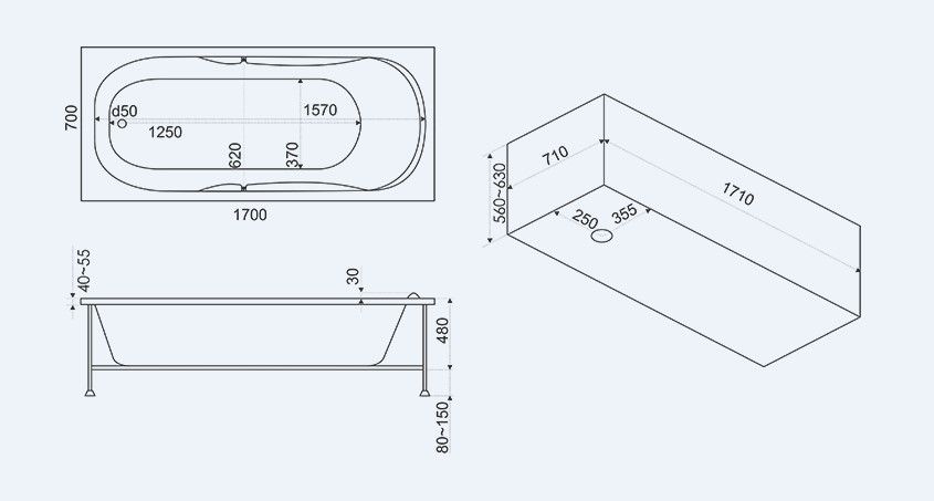 - Размеры: 1700 х 700 мм